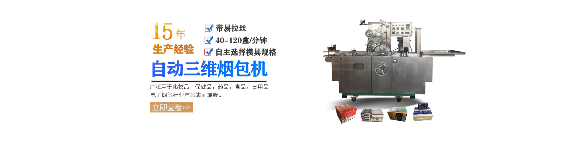 三維包裝機、封切包裝機、多功能封口機、真空包裝機、灌裝機、旋蓋機、貼標機